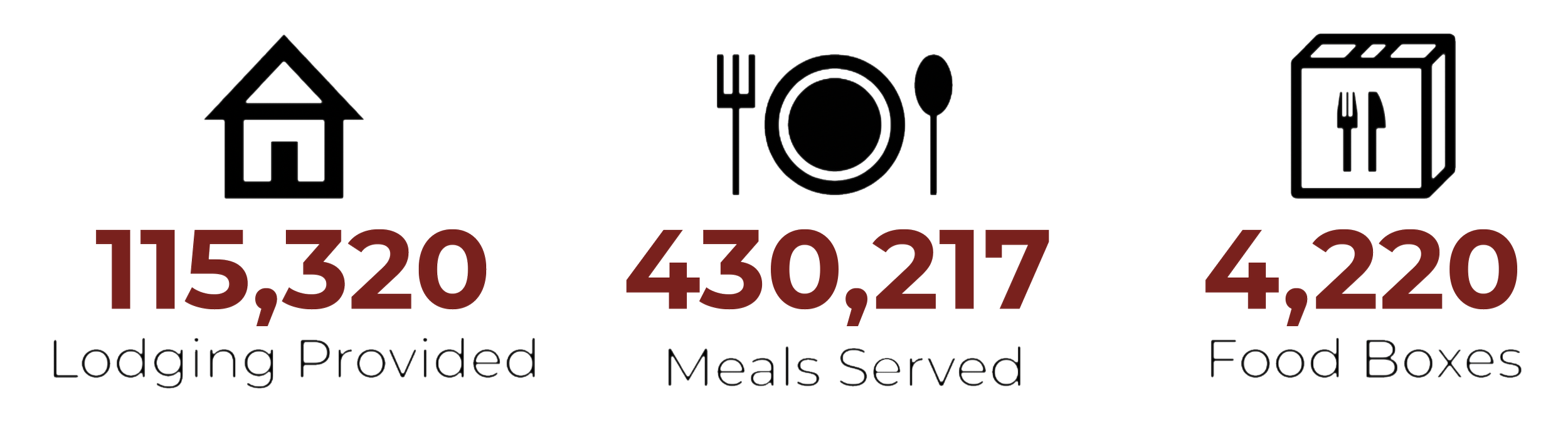 Last year alone, your generosity provided thousands of daily meals and nightly lodging.